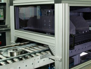 Complete test cabin with separation and sorting of the break discs. Among the inspection characteristics are borehole diameter, Angles of boreholes towards each other and distances.